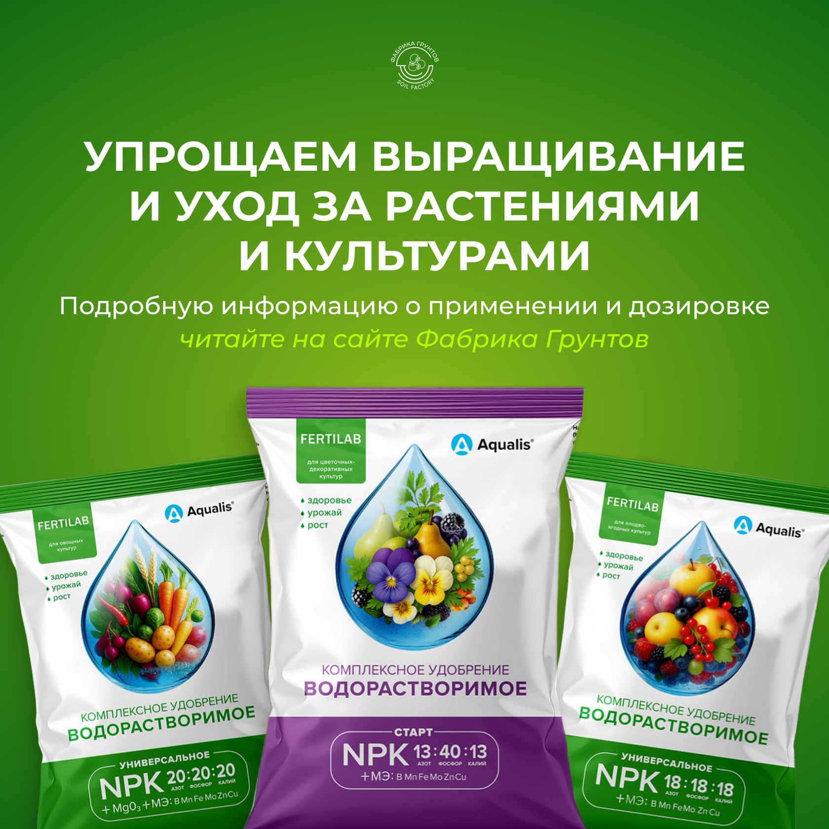 Все подробности об удобрениях и их применении можно узнать на сайте нажав вот здесь fabrikagruntov.ru/fertilab